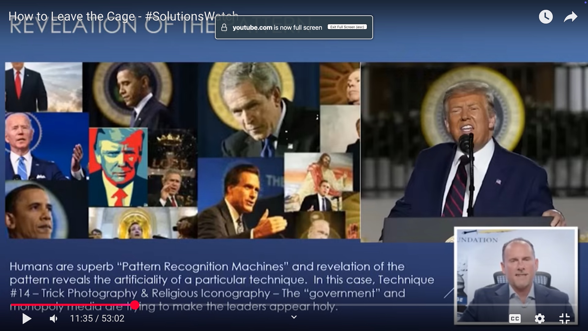 It shows how trick photography and religious iconography are combined to make US presidents appear holy. It's mildly subliminal, but impossible to unsee once you see it. It might explain the reverence people bestow upon popular presidents like Obama and Trump (sorry, Bush and Biden, you'll need more than faux halos).