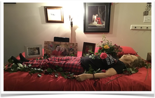 I then carried her body to the living room, where she had had a hospital bed set up. I lit candles and Jonah and I meditated and chanted at her side, in between a relentless flood of tears.