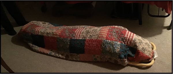 It almost felt like an out-of-body experience for me watching the undertakers lay her body on a white cloth. The white cloth was wrapped around, then buckled to the cot beneath it. I placed a red rose under the middle buckle and then they covered it all with a quilted blanket...