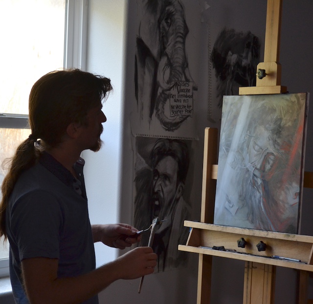 Here's a photo of Jordan Henderson working away at the cover art to my forthcoming novel, All the Humans are Sleeping: