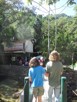 Here's my son Jonah, and Ina's son, Kevin, crossing the bridge to the ziplining area...