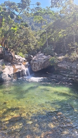 On the third day of our trip, we journeyed up into the mountains to visit Canopy El Eden. Here's a photo of us waiting for the taxi on the streets of Puerto Vallarta...
